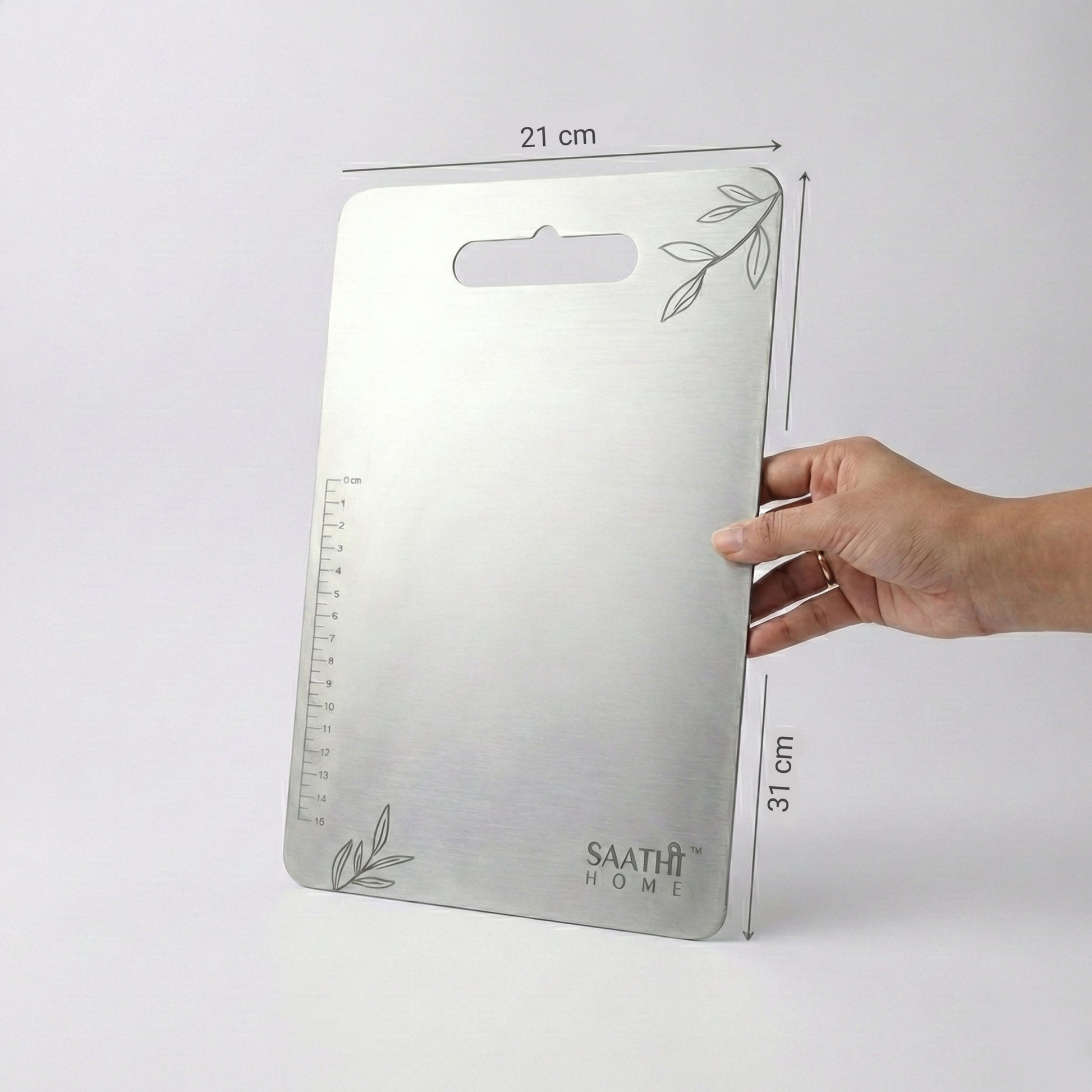 Say goodbye to scratched plastic and moldy wooden boards. The Saathi Home Premium Stainless Steel Chopping Board is the modern upgrade loved by thousands of Indian homes. Designed for hygiene, durability, and precision, this board is the ultimate solution for the health-conscious home chef.